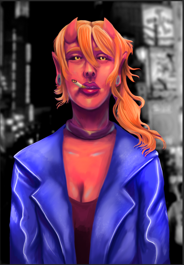 I have a particular character that frequents the majority of my work in the last couple years. Her name is Riley, and I am slowly releasing bits and pieces of her world. The best way I can describe it right now is 'Supernatural Cyberpunk Urban Fantasy'.